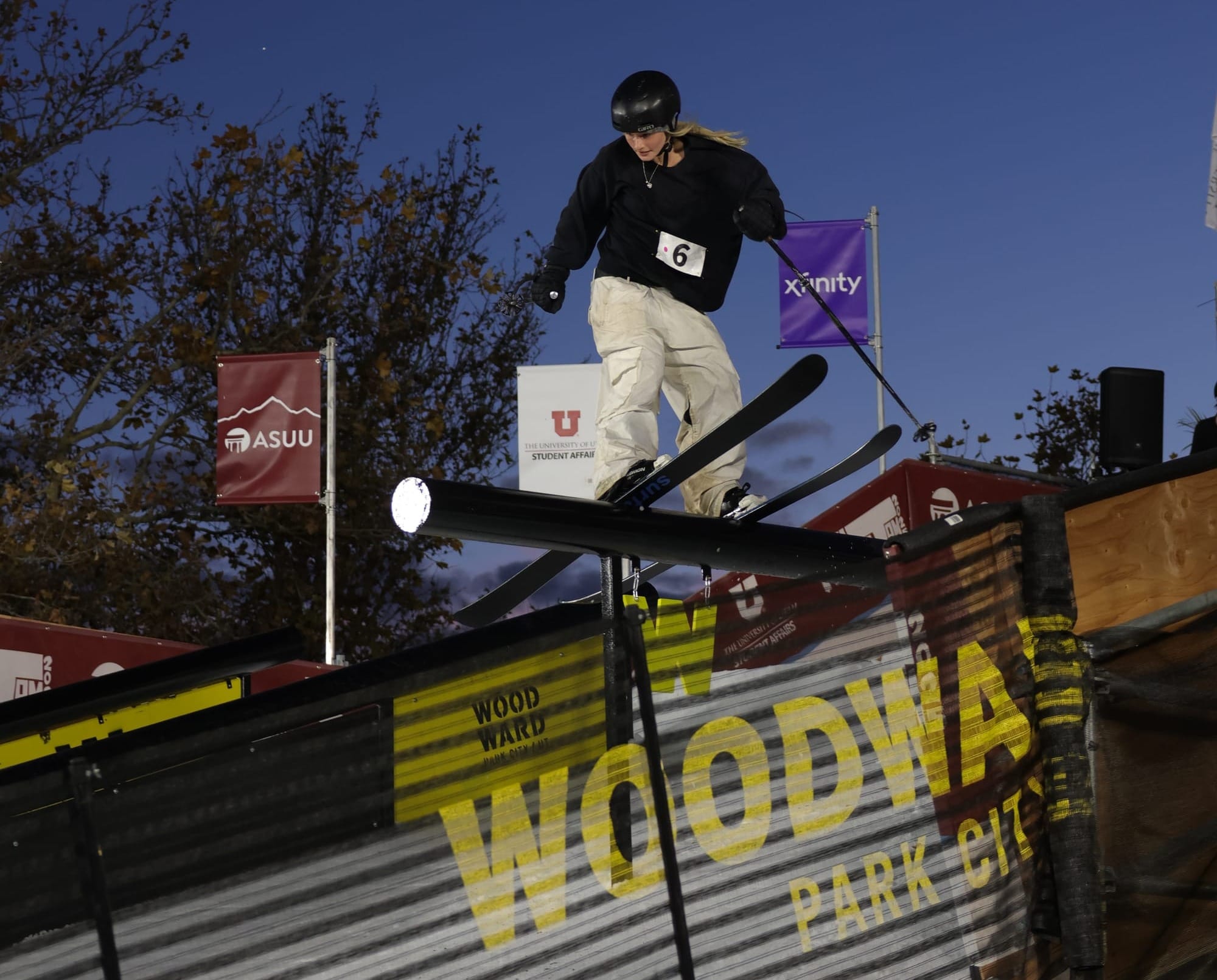 Woodward Park City worked with the Associated Students of the University of Utah to build a full drop in ramp, set up three rails, and haul in tons of snow. Staff were onsite grooming the lips and landings to make sure everything was smooth. What’s normally a walkway between classes turned into a mini terrain park. It was the kind of setup you’d expect on a hill at a resort, not in the middle of a college campus.